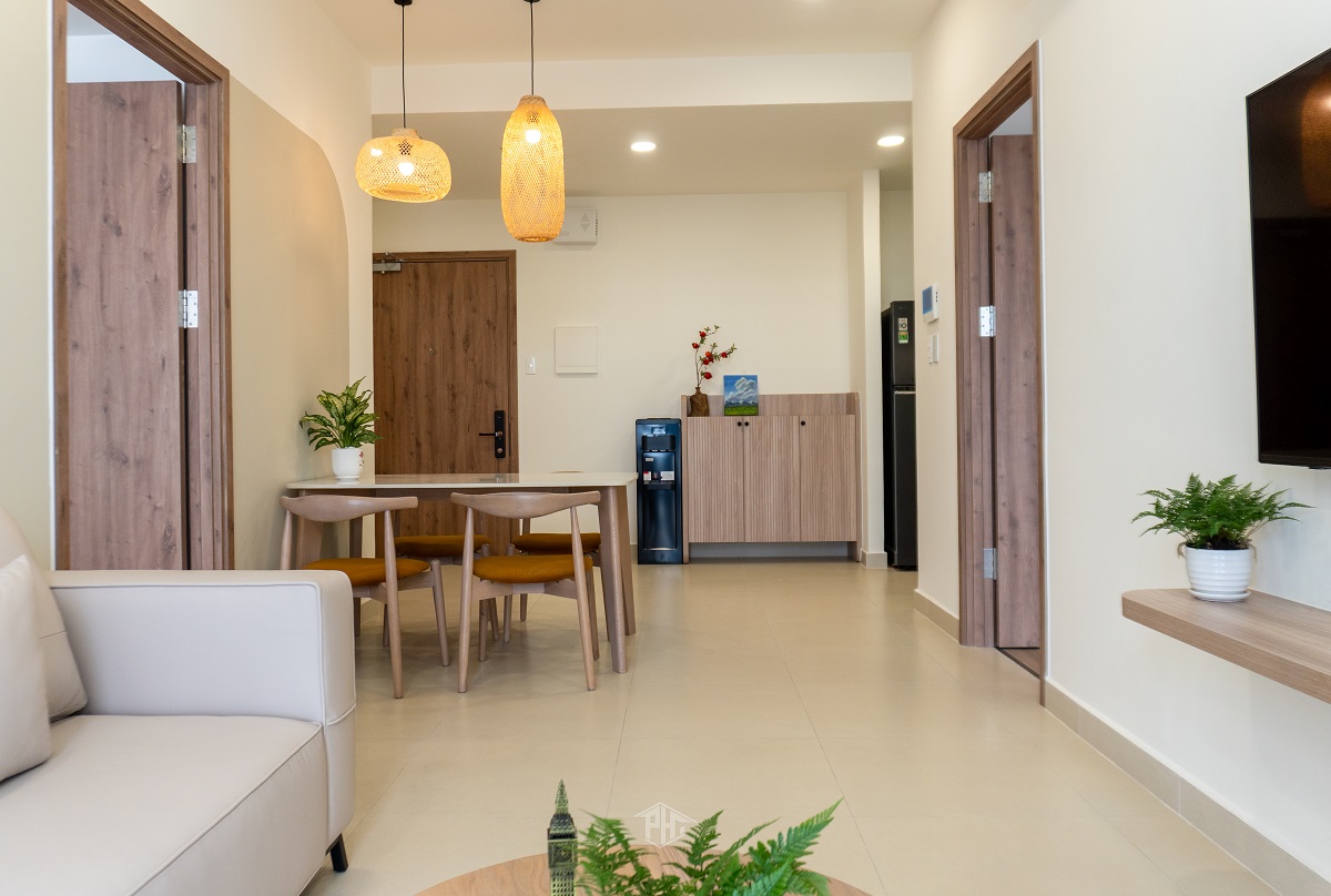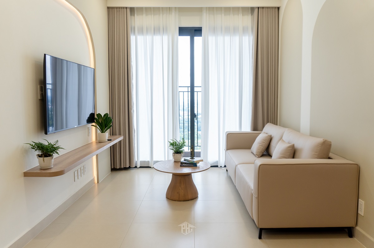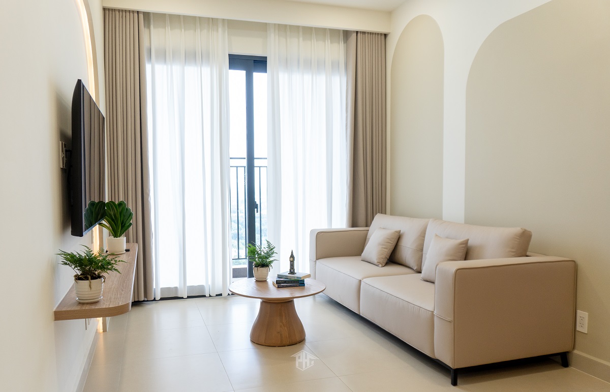 Phòng khách được xem là “trái tim” của căn hộ, vừa là nơi sinh hoạt chung, vừa là điểm nhấn tạo ấn tượng cho khách thuê ngay từ lần đầu bước vào.